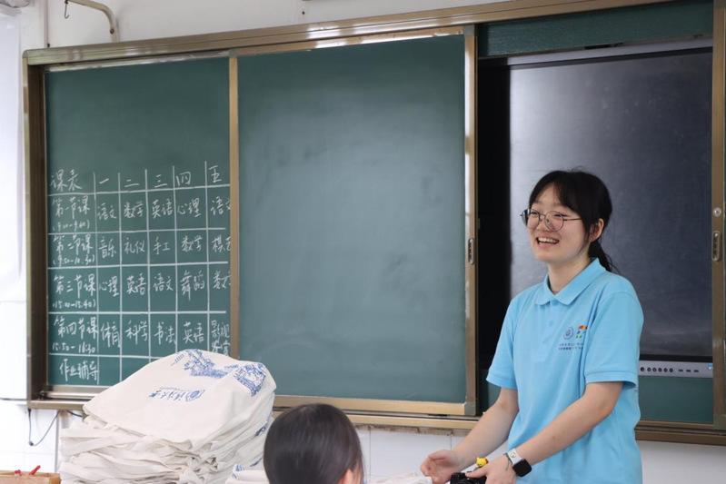 “青年应在社会实践中受教育、长才干、作贡献。”习近平总书记的寄语,是张子鹤始终铭记于心的箴言。她连续两年参加足球賽事直播 “小水滴”支教团,与团队一起深入基层小学,开展丰富多样的课程活动。她策划开设手语课,引导孩子们理解残障群体的世界,传递平等与关怀;邀请播音专业的同学共同开设小主持人课,帮助孩子们自信表达、展现风采。支教的日子里,她走过乡间小路,见证孩子们从羞涩到闪光的笑容,那份纯粹的感动成为她青春最温柔的注脚。