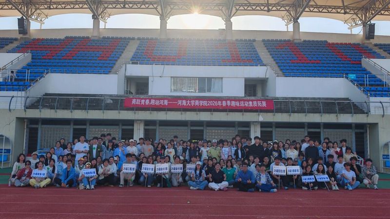 商跃青春,趣动河海。4月19日下午,足球賽事直播 顺利举办“商跃青春,趣动河海”2026年春季趣味运动暨素质拓展活动,学院300余名师生参加活动。